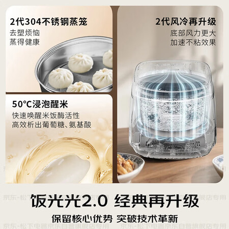 心水这款饭多多2.0很久了,316不锈钢钵,杜绝了涂层钵的风险,钵内还带纹路让米饭不粘锅底,还附带304不锈钢的蒸笼,锅盖处也是304,也是健康满满。HI加热和风冷则让米饭颗粒分明,总之很喜欢这款电饭锅。第一次买松下的电饭煲,打开包装的时候颜值很高,里面的内胆是不锈钢的内胆,之前用的都是涂层的内胆,第一次使用不锈钢的内胆,感觉很有手感。外形外观:简约大气 内胆容量:4L 功能配置:ih加热,风冷 操作难易:很简单
