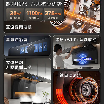 海尔(Haier)抽油烟机30立方变频大吸力1100Pa风压358W功率双三吸自清洁家用燃气灶洗碗机厨房EC739UD二三件套 【烟灶套装】739烟机+高效猛火灶50(天然气目前活动价:2638.4元!