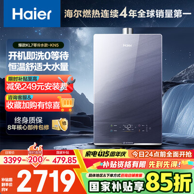 海尔(Haier)【K系列KL5】16升燃气热水器天然气5A一级恒温【国家补贴15%】一级静音水质净化抗12级风 以旧换新目前活动价:1444.15元!