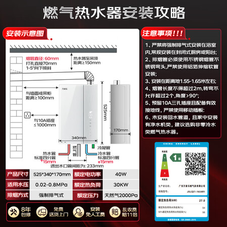 外形外观:质量杠杠的,设计美观大方,商家服务赞,穿上体验很棒,物流服务好,性价比高,爱了爱了 安装服务:安装师傅很细心专业的,速度很快就装好了 一级能效,家里人使用后热水稳定,运行声音小,使用方便,送货及时,到货后工作人员及时联系安装,安装师傅安装时有价目表,流程规范,安装后有人回访,服务较好。