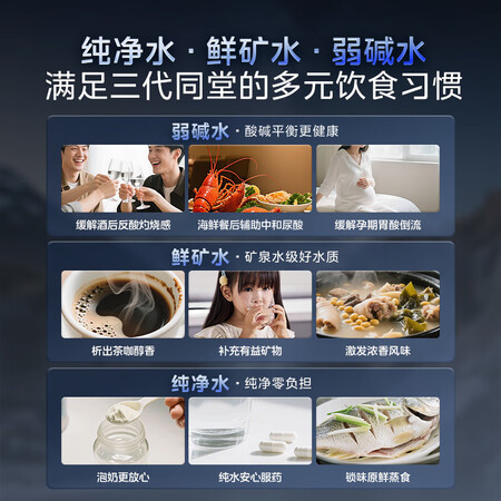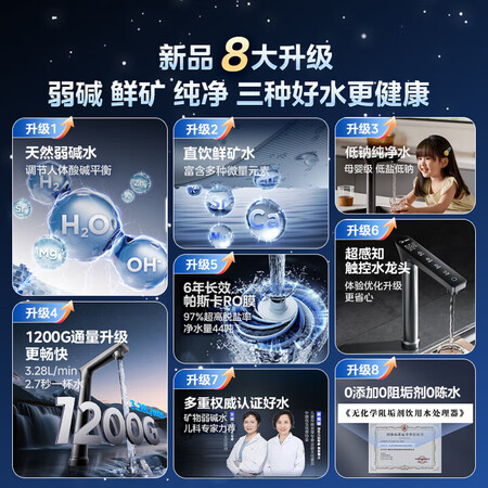 两个美的净水机星河3.0和2.0差别不大的哈,经过比较后我买是美的净水机星河3.0,这个美的净水机星河3.0还满意的,款式多大气的,说实话这美的家用净水机星河3.0弱碱净水器三水直饮矿物质1200G 0阻垢剂 反渗透厨下式净饮机pro升级款政府补贴蛮不错的哈,做工极其考究,刚购没多久的,入手美的星河3.0净矿净水器太值了!最看重它的健康配置——5年长效RO膜过滤超彻底,重金属、细菌全拦截,还能保留天然矿物质,喝着有清甜口感,比纯纯水更养人。双水设计超实用,净水洗果蔬无残留,直饮水随时接来喝,泡茶做饭都放心。关键是全程0阻垢剂,没有化学添加,老人孩子喝着安心,避免了隐形健康风险。1000G大流量不用等,接水快还静音,厨下安装不占地。作为pro升级款,细节拉满,换芯也方便,长期用着省心又健康。家里的饮水健康全靠它守护,真心推荐给注重生活品质的家庭!