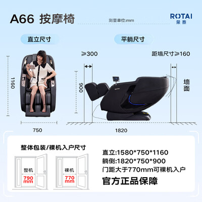 物流迅速,包装完好,产品美观大方。到货后立即体验,功能太丰富了,按摩、加热、音乐播放等应有尽有,值得推荐!可以,送货上门,小巧不占地方,力度一般吧,毕竟小!每天按摩按摩,放荣泰按摩椅A66,是我每天必做的功课!货收到了,颜值高,性价比高,简单好用,非常满意喜欢!宝贝收到啦,看外观挺漂亮的,时间紧张没安装试机,很期待总体感觉还是很棒的,非常舒服,感觉很好,加热功能也特别棒。很让人满意的按摩椅
