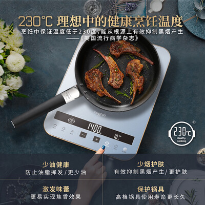 钛古(Taigroo)电磁炉颜值很高,个人还是挺喜欢的,油烟少,满意炒菜干啥都挺好的,满意喜欢用了有段时间了火力猛速度快是我想要的赞????????第二次买了,提升版买了,就是很好,提升的价值有,火力超高。主卧室买的第二套了,特别置换他家的电磁炉,通过女孩也喜欢这个不粘锅,特被好用,看起来很精致的