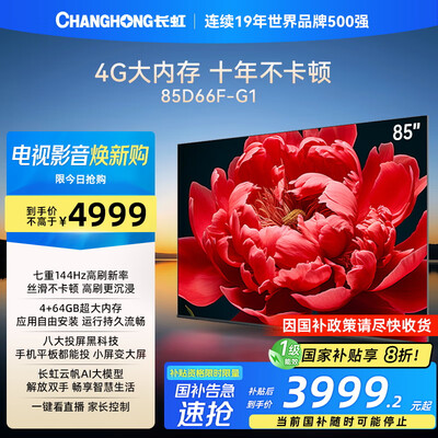 长虹电视85D66F-G 85英寸 120Hz高刷游戏巨幕大屏 4+64GB 4K液晶平板电视机 家电以旧换新国家补贴15%目前活动价:3699元!