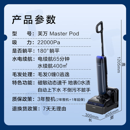 上手简单易操作,自清洁不脏手,轻松解放双手搞定家庭清洁!芙万带来洗地终极革命,真正省力到底。它具备自动加水、自动排污、地刷自清洁、冲洗污水桶、冲洗空间站、高温全链速干、充电及高温除菌功能,无需加水和倾倒污水,拿起即用,放下即净。全能8合一设计实现不加水、不倒污、免维护的便捷体验。