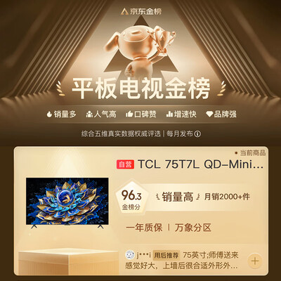 [京东] TCL电视 75T7L 75英寸 QD-Mini LED 华星高阶HVA屏 万象分区 绚彩XDR2200nits 超薄 国家补贴20% T7K首页购物车我的客服手机查看反馈提建议举报家配师