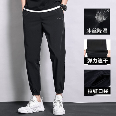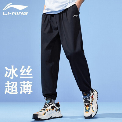 李宁(LI-NING)冰丝运动裤男夏天速干裤夏季束口长裤薄款弹性梭织直筒透气休闲裤 标准黑(冰丝收口-口袋拉链) M170到手价格109.0元。