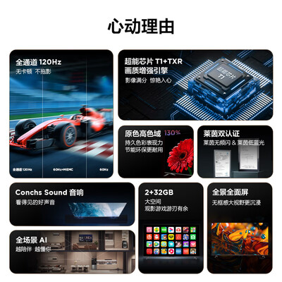 TCL电视 55J7E Pro-J 55英寸 二级能效国补换新 全通道120Hz 超能芯片T1 2+32GB 高刷极速电视目前活动价:2299元!