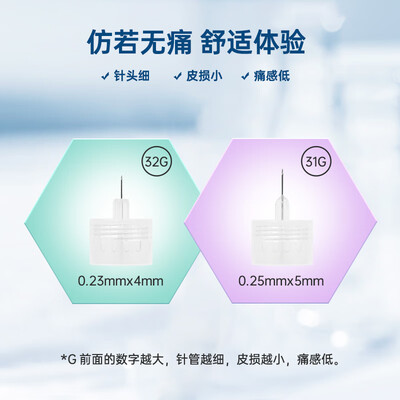 新优锐胰岛素针头0.25(31G)5mm这个价格比实体店便宜。物流超快,第二天就收到货了。超赞!因为需要,同时和医院配的是一样的,所以一直都在回购,价格合理,京东配送也很快,解决了去医院的麻烦,直接寄到父母家,非常满意!家里老人常年要**胰岛素,使用过很多品牌的一次性针头,这次换了这种,正如说明介绍的,创新尖头,减少**阻力,降低疼痛感,通用方便,轻松**,值得信赖。一直在医院开这个牌子,医院开出的牌子比较放心,双十一在京东买比较优惠每颗1.3元,比医院开便宜。