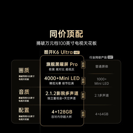 酷开100K6 Ultra价格参考: