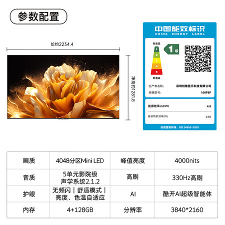 酷开100K6 Ultra配置参数:
