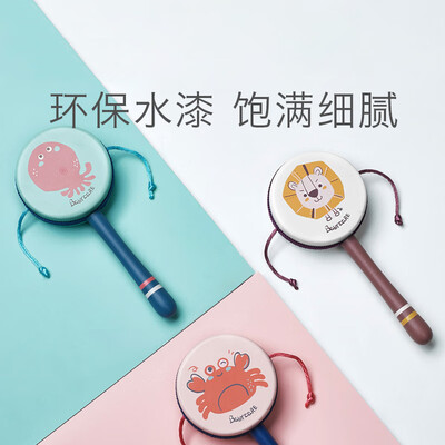 babycare拨浪鼓正面是个小狮子,反面是个小象,摇起来声音很轻脆,但是摇起来比较费体力,因为拨浪鼓的那两个波浪就是绳子上打了一个节。整体木质结构,给娃玩起来放心。跟我在实体店买的一模一样!还是一样的好用,开心不错(?ω?)hiahiahia买给娃娃玩的,不过现在都是大人在玩,用来逗小娃娃,不过怎么感觉我们这个娃娃不是很喜欢这个玩具的样子从玩具,尿布到床都是这品牌,品质有保障!快递小哥很客气!