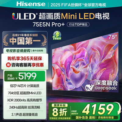 海信(Hisense)75E8N Ultra 75英寸 ULED超画质电视 信芯AI芯片 4000分区Mini LED 黑曜屏Pro 超目前活动价:19383元!