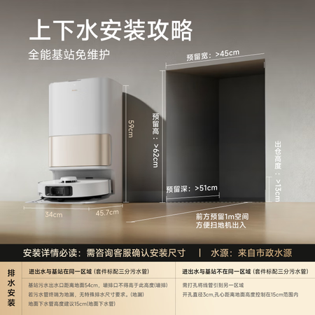 吸力提升至5000Pa,适合地毯或宠物家庭,清洁效率更高。搭载双旋转拖布,下压力度增加,顽固污渍处理更彻底。支持AI避障3.0,减少卡困概率。电池容量5200mAh,单次续航约180分钟,大户型更友好。
