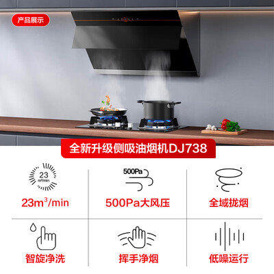 万和(Vanward)【国家补贴20%】侧吸抽排油烟机 23风量大吸力家用智旋洗 一级能效家电以旧换新 DJ738可配燃气灶目前活动价:798.4元!