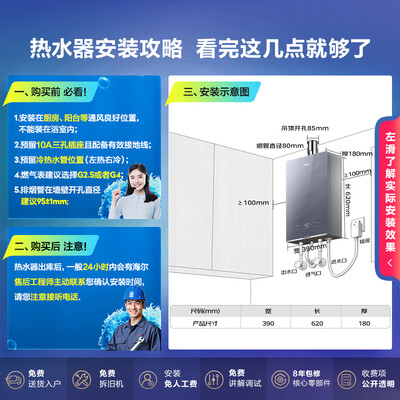 热水器加热速度很快,出水也方便。买的恒温的温度也不会上下波动,洗澡也不会一会儿冷一会儿热不错,恒温效果比之前的好太多了,操控也超级方便!加上八年保修!妥妥的!完全放心了!很棒哟,热水一直持续有,你之前用的好很多,不会出现忽冷忽热的情况看起来不错,mini版的,尺寸正好,安装师傅很负责,一次好的购物体验上一个热水器用的就是海尔K系列KN5,用了近10年,这次活动的超值,送货及安装快速,期待它的完美表现