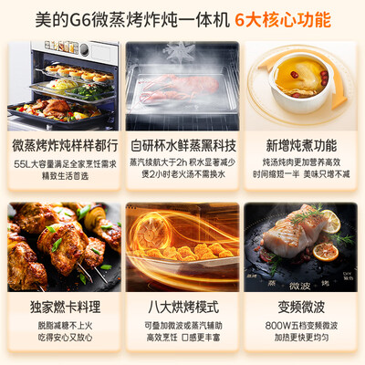 美的蒸烤箱一体机嵌入式G6 变频微蒸烤炸炖五合一 55L大容量家用烤箱蒸箱 无边系列白月光 【革新升级】G6微蒸烤炸炖目前活动价:5354.15元!