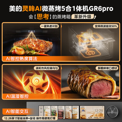 美的(Midea)55L知味感嵌入式微蒸烤一体机R6pro 灵眸AI熟度识别蒸烤箱一体机 微蒸烤炸炖5合1 R6Pro目前活动价:6459.15元!