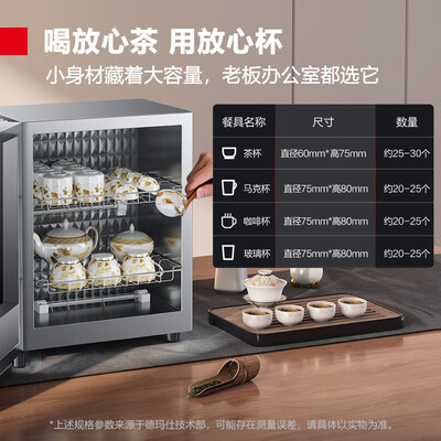德玛仕办公室用台式迷你商用功夫杯子茶具茶杯消毒柜小型家用桌面台面高温消毒柜消毒碗柜 B1- 【50L会议接待】智能触控丨约放24个杯子到手价格369.0元。