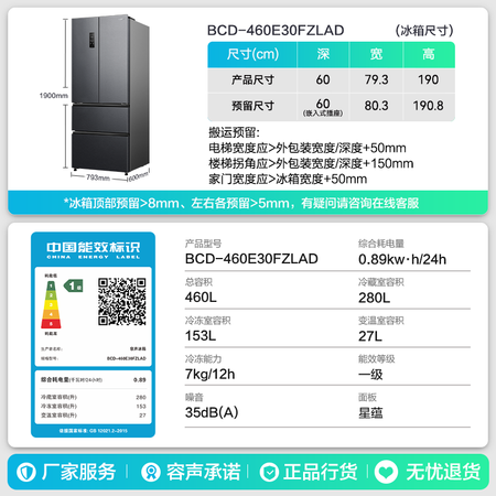 容声460升法式和十字437升哪个好?有什么区别?这二款容声460升法式和十字437升区别还是有的哈,经过比较后我选择是容声460升法式,这个容声460升法式要新些还不错,质感蛮强的,说实话这款容声460升法式多门四开门超薄零嵌入式电冰箱家用一级能效无霜节能大容量BCD-460E30FZLAD 国家补贴的确是蛮可以的哟,做工十分考究,我自己也是才买不久的,【深度】白色超薄零嵌太喜欢了,是特别干净、明亮的白色,这个价位,这个容量,还要什么自行车?这款冰箱还支持控制,可以调整节能省电模式、变温室的温度等等,可以说非常满意了 容声十字437升冰箱到了试用了几天,感觉很好用,很静音,食物保鲜好,没有冻了只腊鸭,没有串味,没有异味,空间大,是很好的体验。 冰箱收到了,师傅送货上门,是我喜欢的款式,声音很小,制冷效果好,好评! 选了好久的冰箱 这款是超薄又双循环的 很喜欢 容量也很大 新家还没装修好 迫不及待就用上了 家里人都很满意 外观很漂亮,厚度很薄,很好看!送货小哥很热情,直接入户拆箱!很不错! 外形外观:非常美观大气容量大小:容量非常大,可以保证一家四口的适用范围