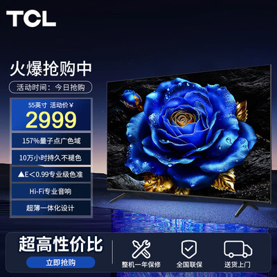 TCL 平板电视 55英寸 240Hz高刷 QLED量子点 AI电视 55T5L-JN 含挂架安装 目前活动价:2999元!