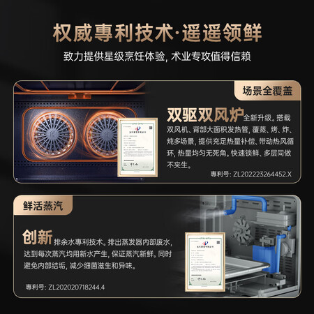 黑晶彩屏面板,非的高档时尚,清洁起来也毫不废力!自带除水垢和水路清洁系统,蒸起来也无后顾之忧!720度双风炉热风循环烤,效果真的非常出色!回来试了一下烤蛋挞,和蒸鱼,特别好用,外观也好看,客服也很用心交。喜欢的可以安心下单有国补也划算 挺大一个微波炉 挺好的 用起来很方便