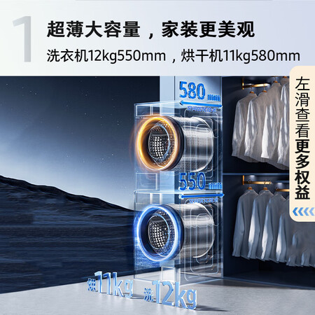 - 烘干效率:采用热泵烘干技术,低温烘干更护衣,同时能耗更低,适合频繁使用烘干功能的家庭。