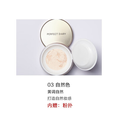 完美日记(PERFECTDIARY)蜜粉/散粉别人我不知道,但是挺适合我。我是中性皮肤,粉质细腻贴合。在拍粉之前做好补水,不假白,不要拍太多啊,我觉得挺好,稍微修饰就行,不要刮大白。而且持妆久,上午9点多拍的,现在6点半还有效果。我觉得不错,买对啦!这款散粉,粉质很细腻,上妆很透亮。我夏天油性皮肤,控油效果也不错。还很便宜。我看到评价说有遮暇效果,这个对于我来说不明显。还是很值得推荐的。已经用第三盒了我是油性皮肤一整天控油忒别好看推荐的,每次擦完气垫油油的,今天早上拆开试了一下,效果真的很不错,涂抹后脸上的粉底不粘纸巾了,完美日记平价又好用,会继续用