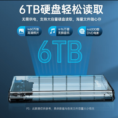 奥睿科(ORICO)硬盘盒盒子不错,性价比很高,而且还很漂亮,送的包也很坚硬。不错,工艺很好,连接很顺畅,速度可以接受,好喜欢奥睿科透明的2.5英寸硬盘盒,用着感觉很纯净,以前有过一个,送给亲戚了,这次趁京东618再买一个,谢谢!外形外观:装好后一种透视的科技感,尤其是旧款的机械硬盘或者用M.2转接托架B-keySSD。读写速度:读写速度很快,和内置硬盘一样。其他特殊:安装方便,拆解也很简单,不需要额外的工具很方便。质地轻巧安装在里面不会晃动。9.5mm和7mm均可。