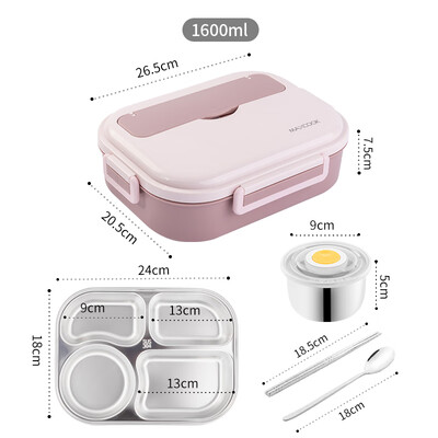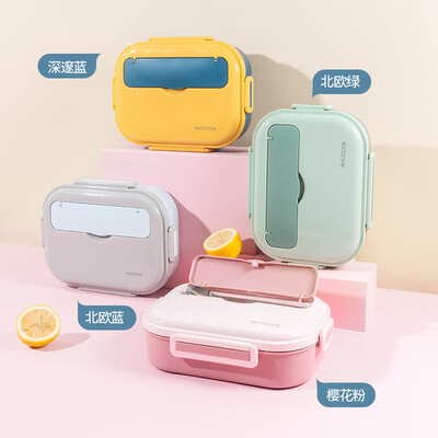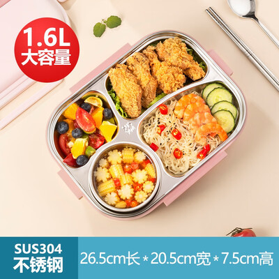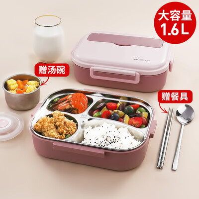 美厨(maxcook) 304不锈钢饭盒4.5cm加大加深学生分格餐盒分隔饭盒男女保温便当盒配密封盖 樱花粉四格1.6L【配筷勺+汤碗】MCFT534到手价格69.0元。