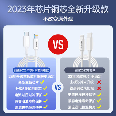 品胜 苹果数据线PD快充线20W充电线 适用苹果iPhoe14promax131211X8手机充电器 PD20W【苹果快充1.8米】弹窗包赔到手价格32.9元。