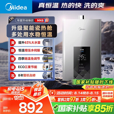 美的(Midea)16升燃气热水器天然气智控增压水伺服恒温【国补立减15%】 ECO节能 低水压启动JSQ30-MK6耀夜目前活动价:976.65元!
