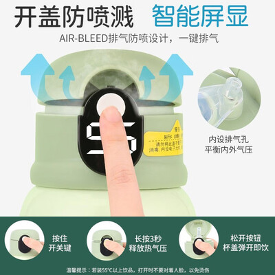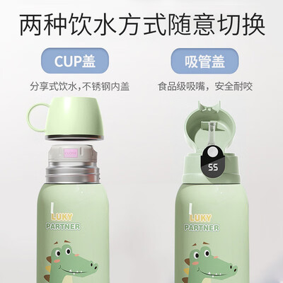 贞喜气 儿童保温杯 学生大容量带吸管水杯智能屏显饮水杯男女316不锈钢双盖两用儿童杯子500ML到手价格69.0元。