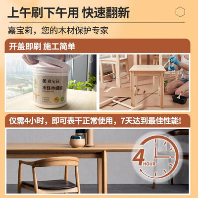 良心说说嘉宝莉FH-KHW320L-041kg真实使用评测?吐槽一星期感受分享!说真的这款嘉宝莉防腐木油水性木蜡油木器清漆透明防腐户外实木亭子栏杆红木色1KG确实蛮可以的,挺好,还未使用,日后使用后再来评价,包装好 好没用,看着是正品,应该不错吧,先给个好评吧,起码发货速度挺快的。要给院子里的防腐木使用,希望能有好的效果。 嘉宝莉(CARPOLY)木蜡油无味,挺好的,回来马上刷。刷多几次就完全遮盖了刷完很快就干了,效果很好,表面干透之后有一层硬壳。