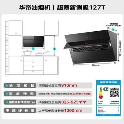 华帝(VATTI)【国家政府补贴20%】侧吸式家用脱排吸油烟机22风量大吸力挥手智控一级能效可配燃气灶 i11127T目前活动价:1199.2元!