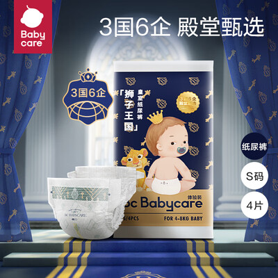 babycare皇室狮子王国纸尿裤试用装S码-4片(4-8kg) 新生儿小号尿不湿到手价格9.9元。