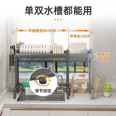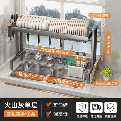 家佰利【次日达】长度可伸缩厨房水槽架沥水架置物架碗碟架水池置物架收纳架盒晾沥洗碗架筷刀架砧板架不锈钢 【火山灰】升级款单层全套【单槽双槽均能用】 长度可伸缩58-93CM到手价格258.0元。