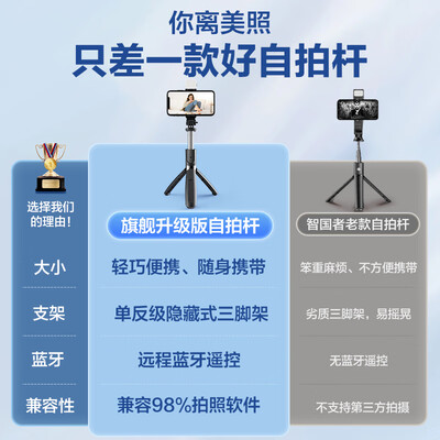 智国者 自拍杆三脚架手机支架拍照神器桌面手持蓝牙补光灯拍视频抖音vlog苹果华为oppo小米vivo通用到手价格59.9元。
