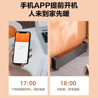 格力(GREE)WIFI智能遥控踢脚线取暖器家用IPX4防水浴室干衣移动地暖电暖器家用电暖气 NDJC-S6022B到手价格399.0元。