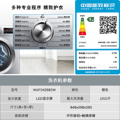 达人爆料博世XQG100-WAP242682W功能如何?良心点评实际情况!说实在话这个博世(BOSCH)【净效除菌】10公斤全自动家用大容量1250转 一级能效变频滚筒洗衣机WAP242682W 以旧换新非常nice的,这款洗衣机看了好久的,到货后果然跟预期一样,洗的干净,声音又小,还有些功能在摸索中,总体很满意 送货及时,包装完整。预约安装快捷方面。货品白色特别干净。功能完全满足还是大排量。完美 博世(BOSCH)洗衣机用起来不错,希望小毛病不要多,能坚持10年做工精细,设计美观大方,运转平稳,洗衣效果很好
