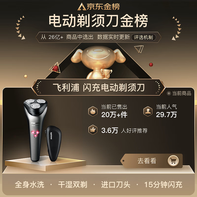飞利浦(PHILIPS)剃须刀晚上下单第二天就收到货了,京东速度给力,送的包也很好,携带方便。一小时充满电。手感不错,流线型外观,刀头更快,声音不大,用起来也方便,包装不错没有破损,还送的礼品盒,我想给我老爸也买这个昨天下午下呢单!今天上午就收到货了,试了一下效果很好呢,值得拥有值得信赖的产品爷爷点名要飞利浦看了这性价比不错净剃程度:他说好