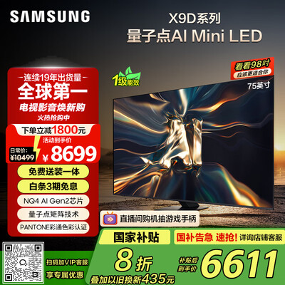 三星电视75X9D价格:7199.2元!