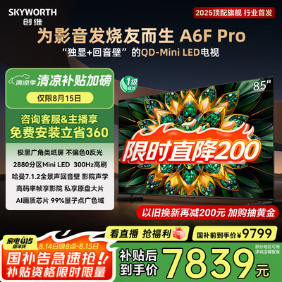 创维(Skyworth)电视85J77F 144Hz高刷解码 AI秒懂语音 4+64GB 创维声学系统2.2目前活动价:6599元!