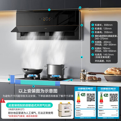 非常实用的配置,颜值高,顶侧双吸,比较静音,带有灯光非常贴心,物超所值,烟灶联动操作简单省事,非常推荐。为老人换新购买的这套烟灶套餐性价比高,外形美观,相当实用,感应灵敏,值得拥有!吸力大,火力猛,烧得虎虎生威!吸力比较大,客服很好,安装及时指导,值得信赖的品牌外形外观:漂亮排烟效果:好静音效果:好清洗难度:好使用后感觉非常好!外形外观:外观漂亮排烟效果:排烟效果好静音效果:燥音不大物流速度:快清洗难度:清洗难度:新机未清洗