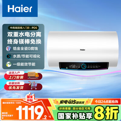 海尔BK1和海尔PD5哪个好?有区别吗?说实在话两款海尔BK1和海尔PD5区别不是很大的哈,款式和配置是差不多的,只是海尔BK1更强一些,看个人需要吧,不过家用的话,这两款都是可以的,我自己用的是海尔BK1,款式多大气的,整体看着相当上档次,然后质感不错,最重要的是这个海尔BK1做工十分细腻,说真心话这海尔(Haier)60升【小魔盒BK1】超薄扁桶双胆电热水器家用储水式3300W大功率速热 EC6001HD-BK1银U1 以旧换新使用过一段时间后个人觉得很OK的,家里以前就是用的这个牌子,信任大牌商品,主要特别好用,这次又买的,老公说看起来特别好看,高大上,上门安装的师傅也特别好,总之,特别满意,全部给十分 海尔BK1物流快,外观好看,偏平的不占地方,热水快,昨天温度65度,今天还有50度,保温性能好,是一款性价比高的产品。 外观美观,实用,安装师傅上门很快,不用担心安装问题,总之选择海尔BK1就对了。 刚刚收到货,商品看起来颜值不错功能挺多,安装师傅也很耐心帮忙解答很多问题,有任何问题可以咨询并解决,比较满意? 这款扁桶的热水器真的太好了,颜值高,小巧玲珑不占地方,值得推荐 超级棒,趁着双11把冰箱热水器全换成海尔BK1的了。超薄热水器很适合我家?