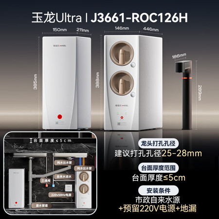 两个安吉尔玉龙UItra和玉龙Pro差别不大的哈,经过比较后我订是安吉尔玉龙UItra,这款安吉尔玉龙UItra要新些还不错,质感很强样子时尚,实实在在的说这款安吉尔净水器玉龙Ultra2000G温热水流速家用厨下式加热直饮机5年RO膜创新分体式1000G J3661-ROC126H 型确实很OK的,做工细腻,我自己也是才买不久的,出水速度:快,符合日常需求 静音效果:几乎没有声音,水箱空了补水和加热有点声音,不影响日常 外形设计:比想象的小,橱柜完全够用,还留出了一大片储存空间 安装服务:主动跟我约时间,很方便。我们家没有下水三通,跟师傅买了,很方便。此外,师傅帮我们调整了下水管方向,更美观,节省了空间 其他特色:肖战选品不错 对比了多家净水,安吉尔净热分体机真是研发到我的心巴上了,刚好就是我想要的。很不错,智能小程序都能线上设置,挺方便~其他就用用看看吧,体验感最重要