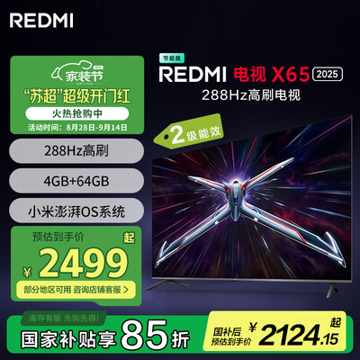 小米电视S65 Mini LED 2025 L65MB-S【JVZM】目前活动价:4319元!